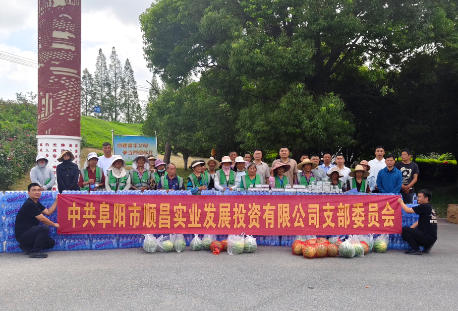 7月9日,在泉河風(fēng)景帶園林綠化管理現(xiàn)場,阜陽市順昌實業(yè)發(fā)展投資有限公司黨支部聯(lián)合泉河風(fēng)景帶管理處、阜陽建投龍城管理服務(wù)有限公司組織開展“七一”夏日送清涼主題黨日活動,用實際行動守護園林綠化養(yǎng)護者健康安全。